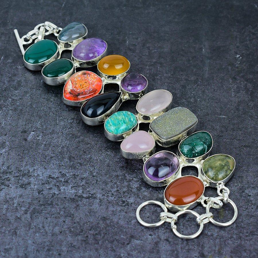 Браслет из серебра 925 пробы с натуральным шалфеем, аметистом и ониксом 7-8 дюймов R7S01