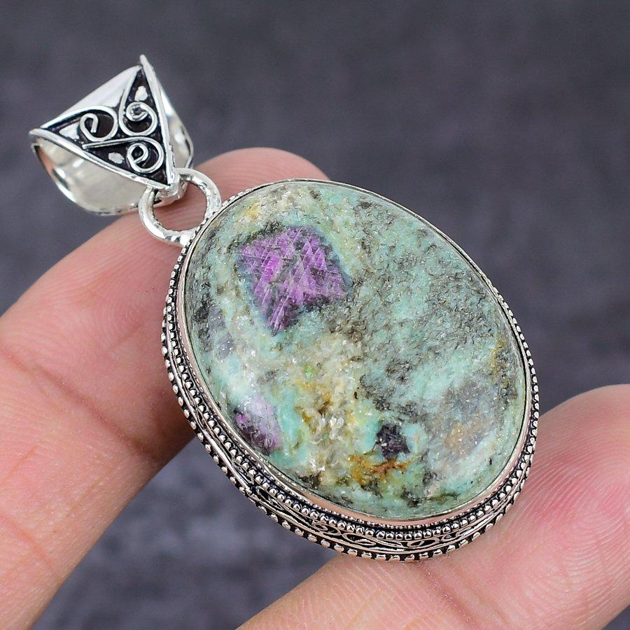 Натуральный Рубин Фуксит Драгоценный камень 925 Стерлинговое серебро Ювелирный кулон 2,05"