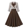 GMXIA Черное хлопковое платье в винтажном стиле Хепберн с поясом на талии и расклешенной юбкой