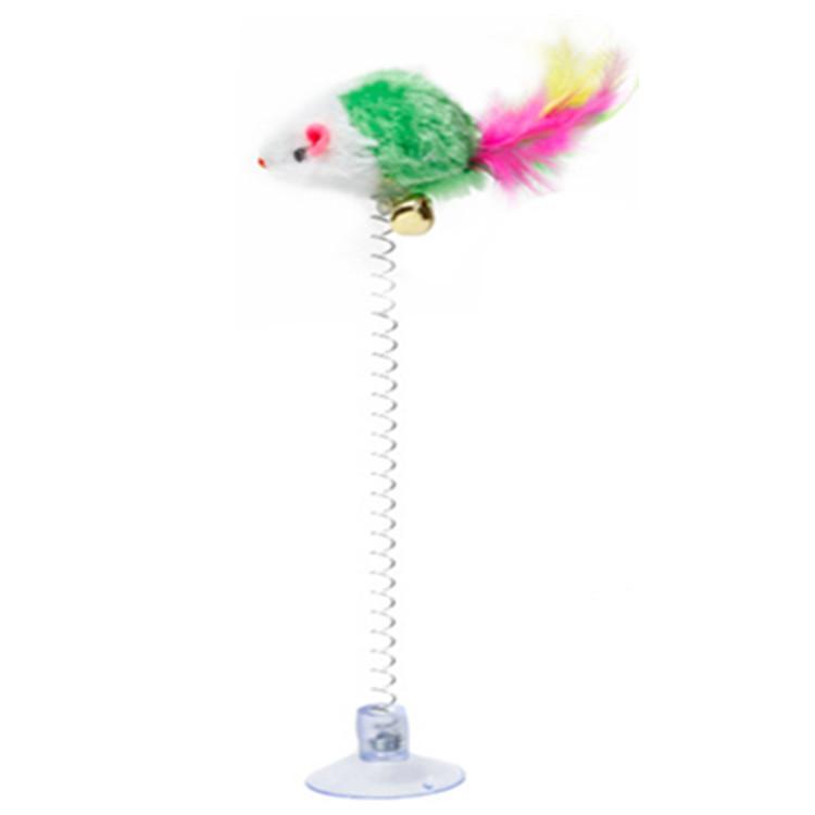 Качели Мышь Присоска Весеннее Перо Мышь Со Звуком Звонка Мышь Кошка Игрушка Товары Для Домашних Животных