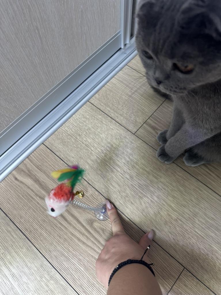 Данная игрушка заинтересовала кота, но она не под каким воздействием не крепится ни к какому покрытию. Ни на кафель ни на ламинат не на ДВП