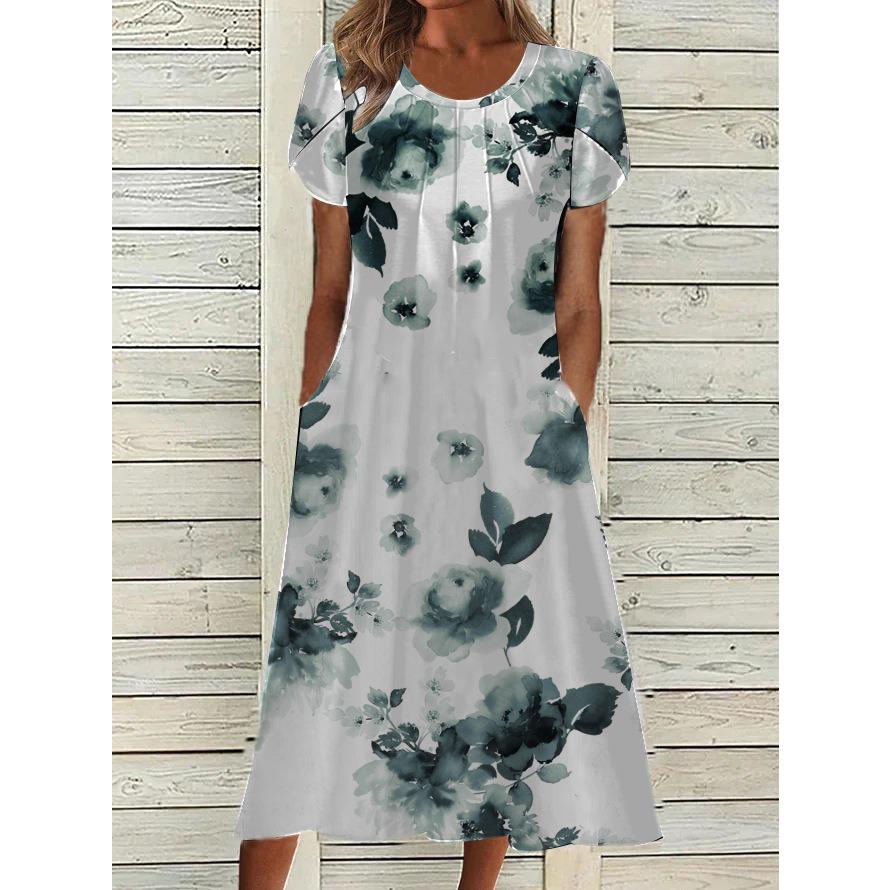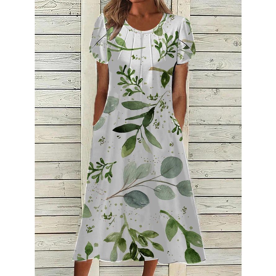 GMXIA Летняя мода для женщин, скидка, напечатанное платье с круглым вырезом, карманное макси-платье для женщин