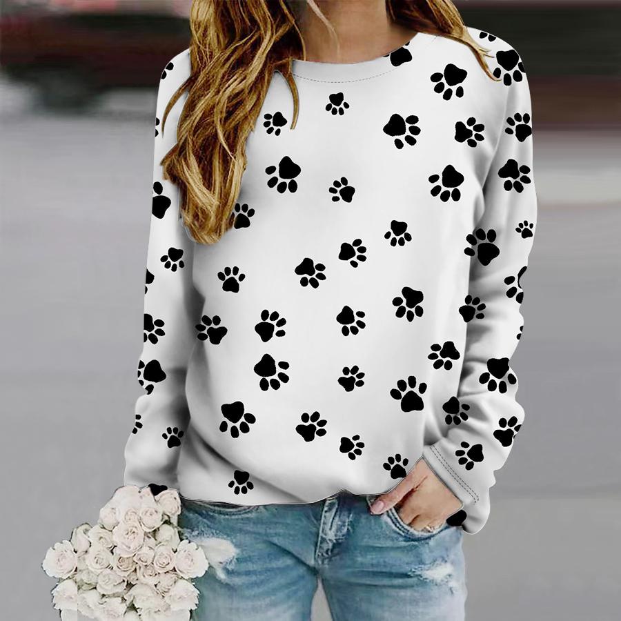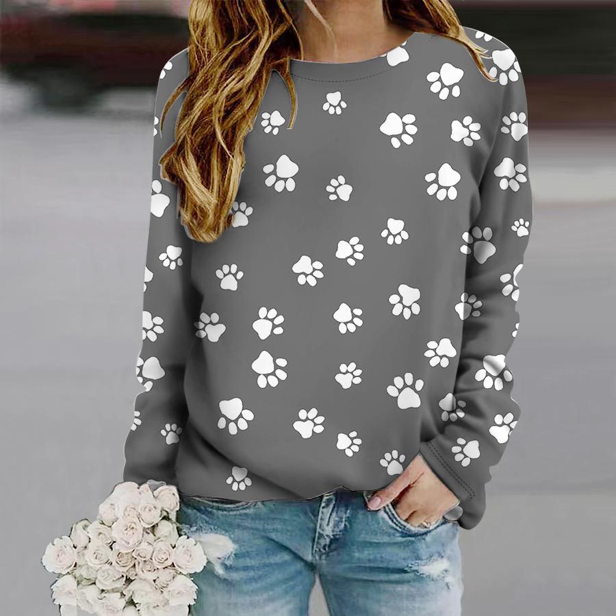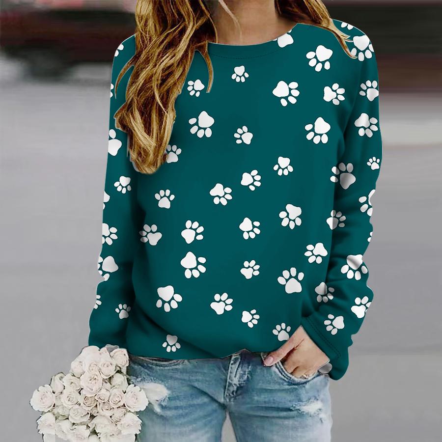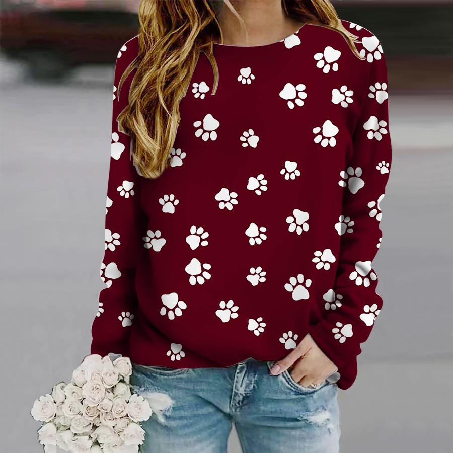 Топы для женщин, мини-футболка с круглым вырезом и длинным рукавом с принтом собачьих когтей, осенний повседневный тонкий пуловер, женский топ с длинным рукавом
