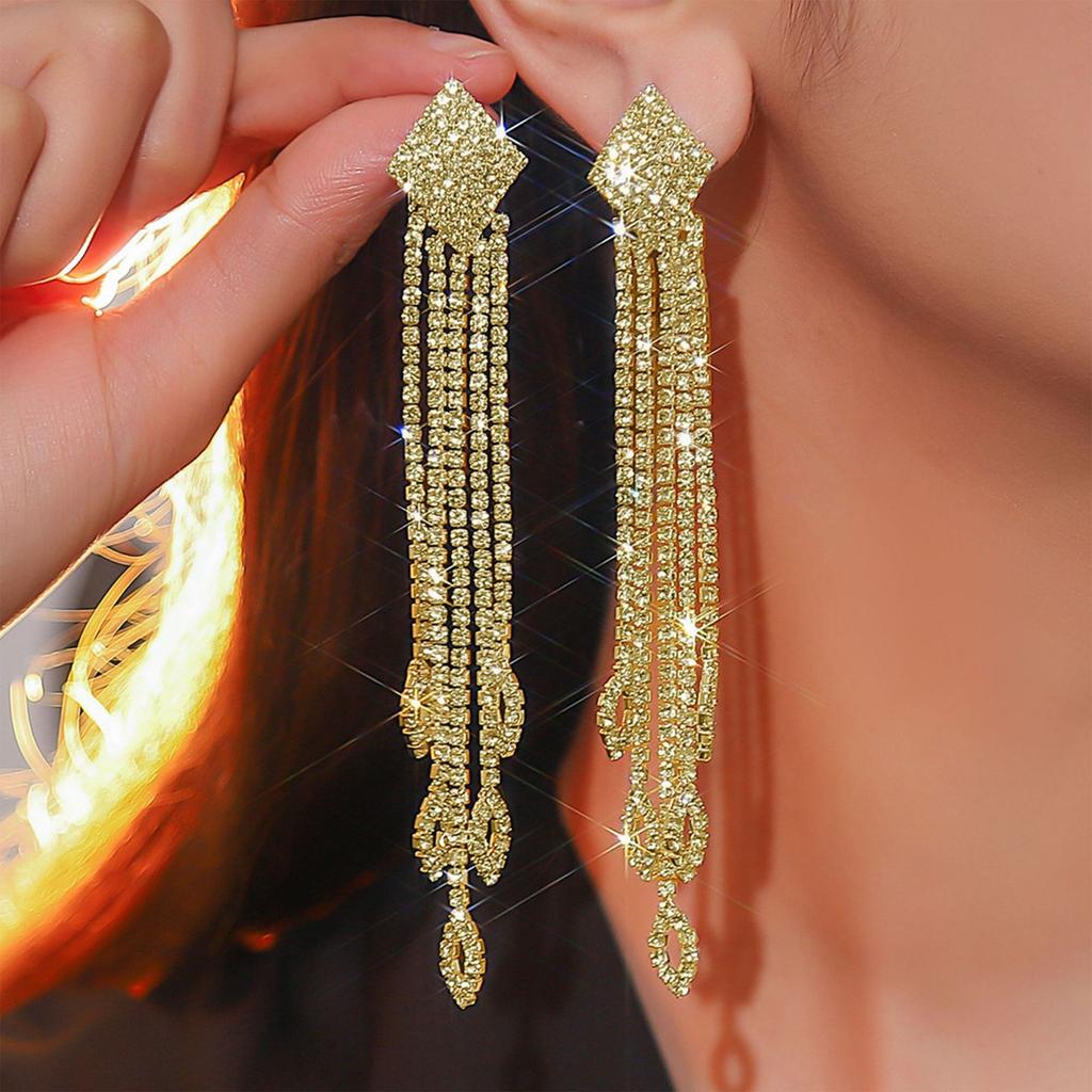 Длинные серьги с преувеличенными бриллиантами, модные серьги в стиле «Темперамент», аксессуары к платью, женские серьги, свадебные серьги