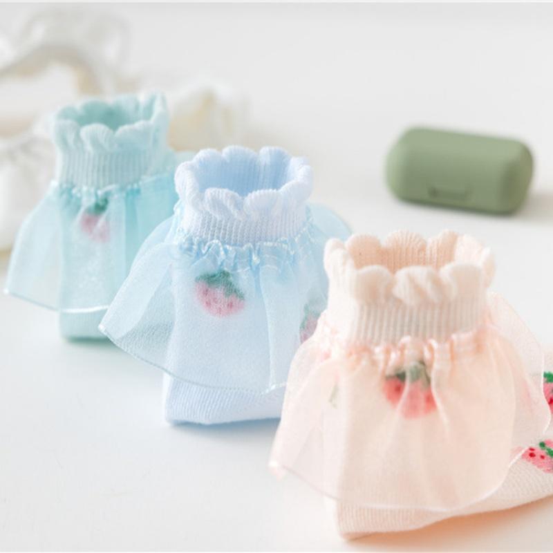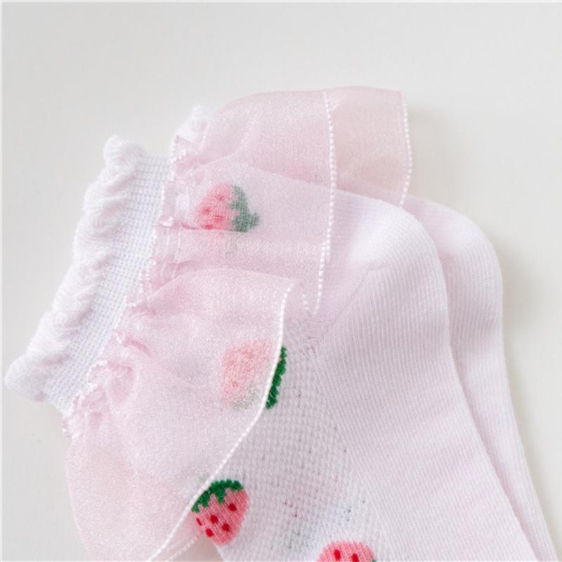 5 пар/компл. детские носки для девочек, летние тонкие носки с клубничным кружевом и кружевом принцессы для девочек-подростков, носки для малышей от 1 до 15 лет