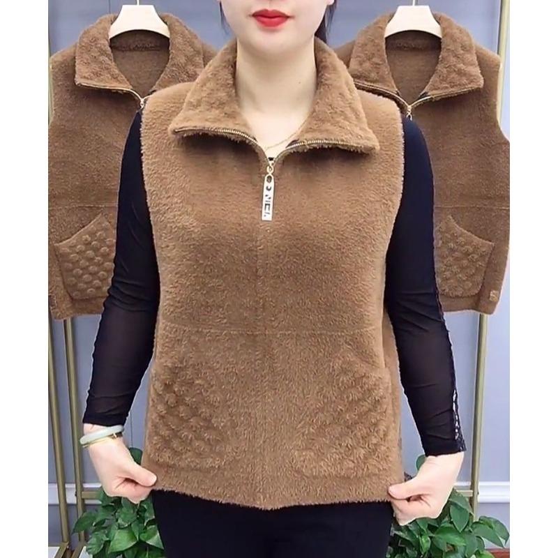 Модный и универсальный женский жилет из высокоэластичного норкового бархата с застежкой-молнией для осени и зимы