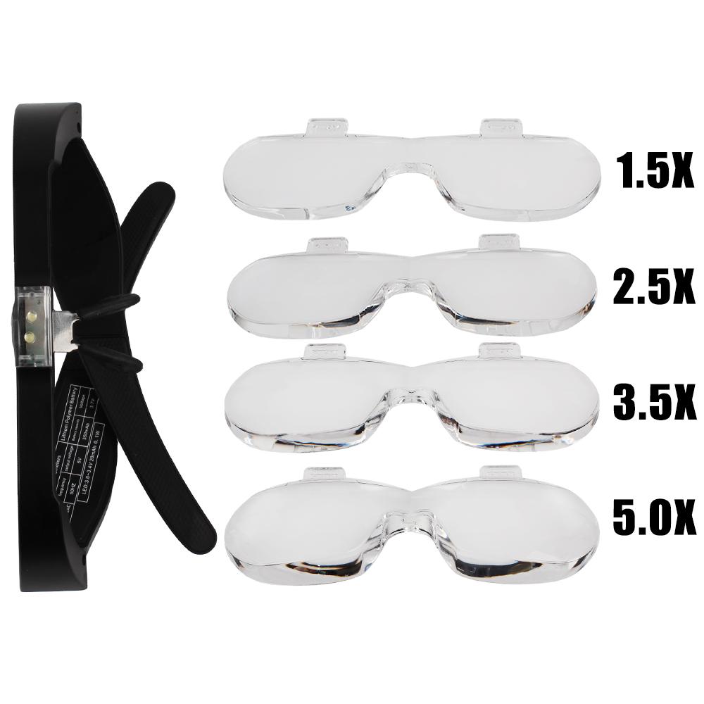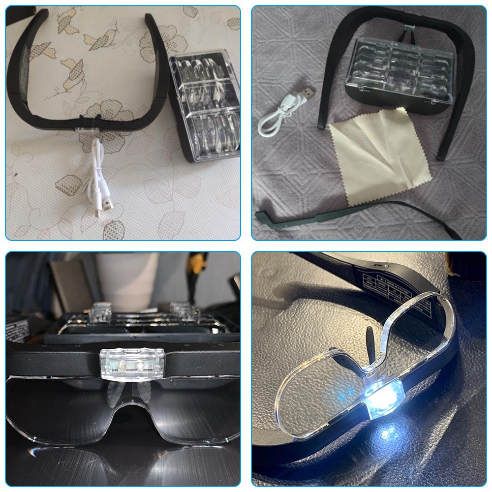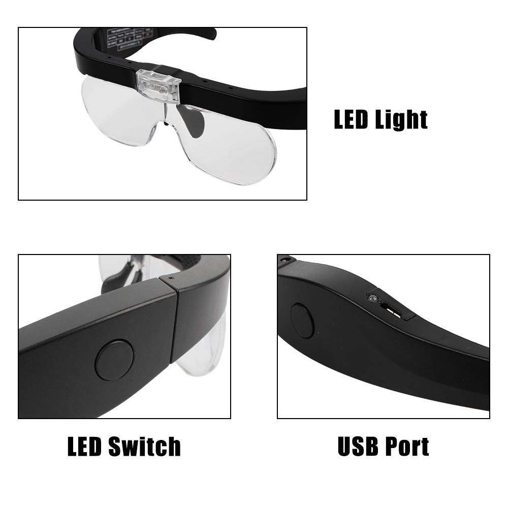 Увеличительные очки с головным креплением и светодиодной подсветкой для чтения, ремонт часовщиков, USB-перезаряжаемая лупа 1,5X 2,5X 3,5X 5,0X