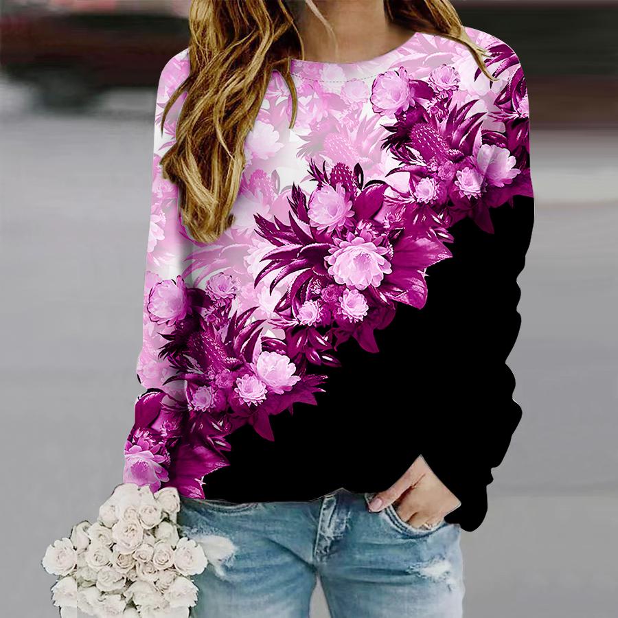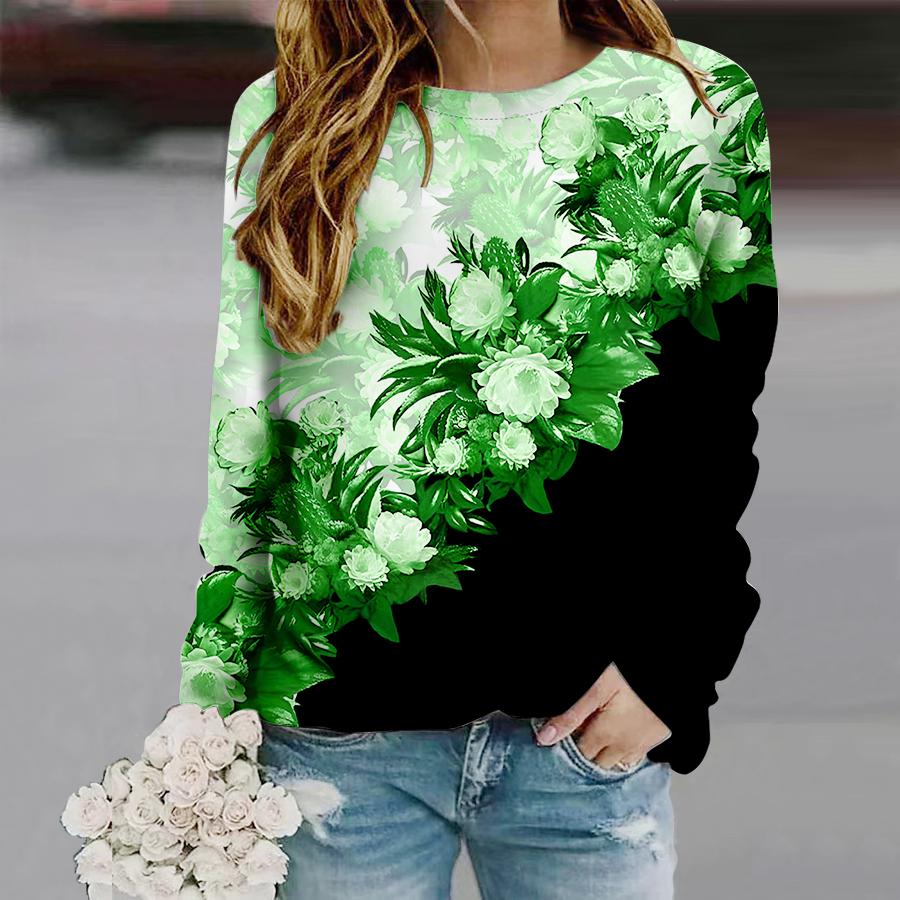 Топы для женщин с цветным принтом кактусов, круглым вырезом и длинным рукавом, футболка, осенний повседневный тонкий пуловер, женский топ с длинным рукавом