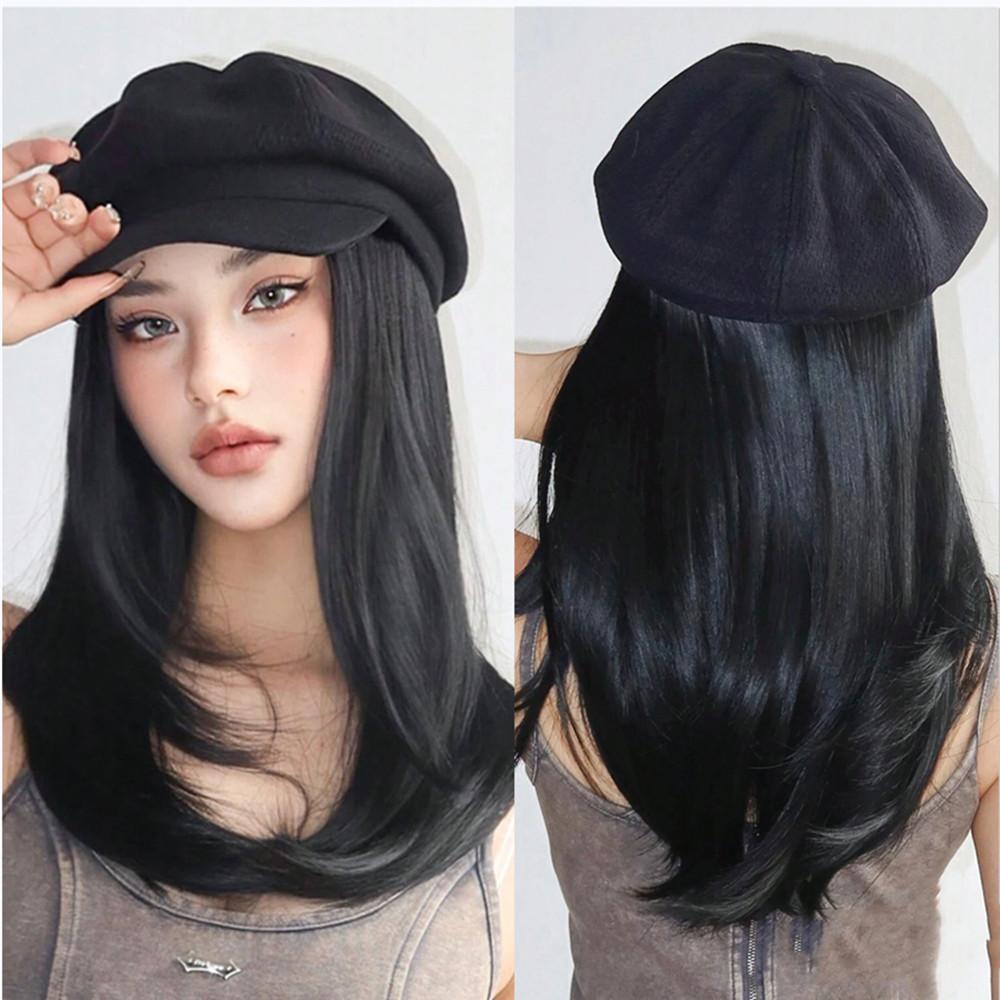 Черные синтетические парики с шапочкой, длинные многослойные прямые парики, шапочка для газетчика, накладные волосы для женщин, естественный вид, термостойкие