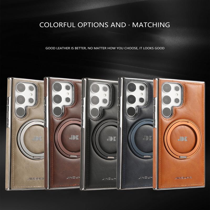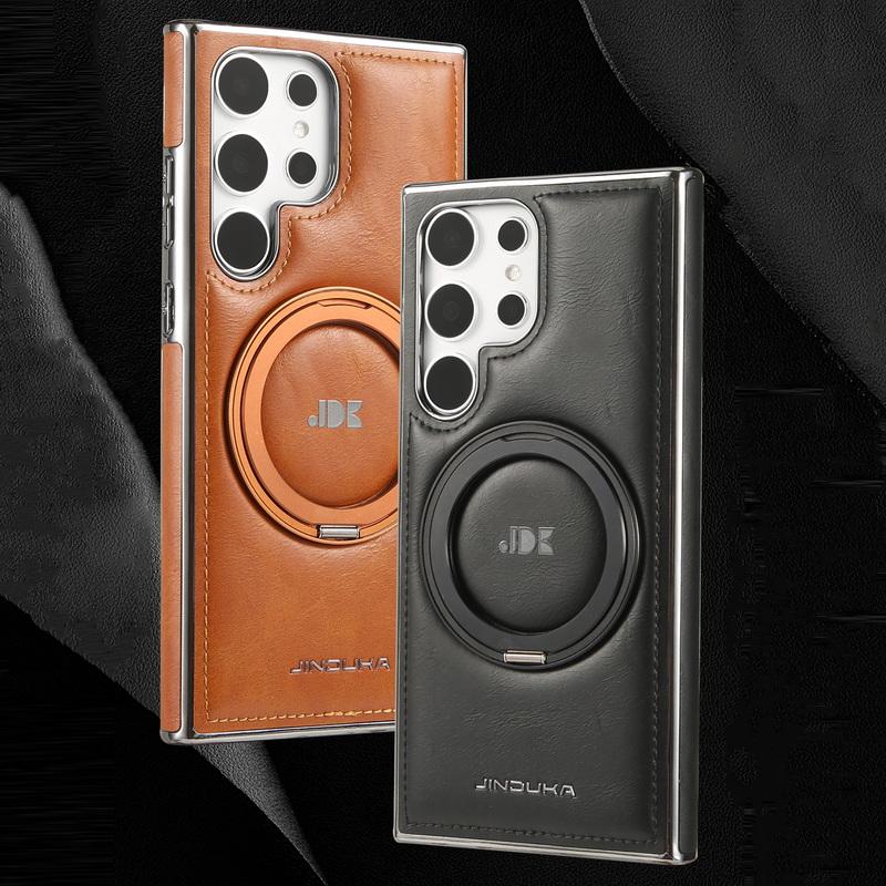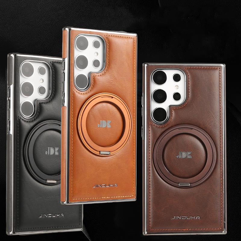 Чехол-держатель из кожи Business Leather с магнитным вращающимся кронштейном для Samsung Galaxy S24 Plus S23 S22 Ultra для MagSafe Luxury, защита объектива, противоударный чехол для телефона