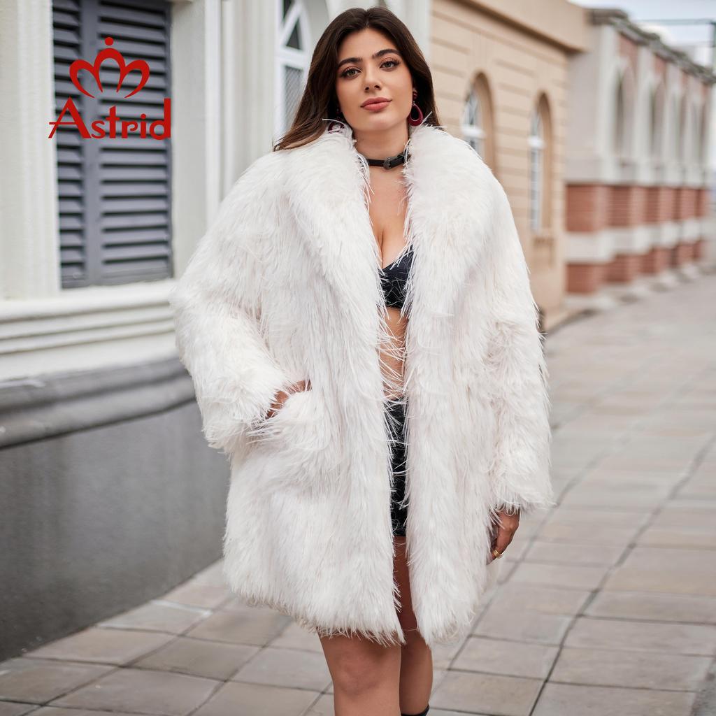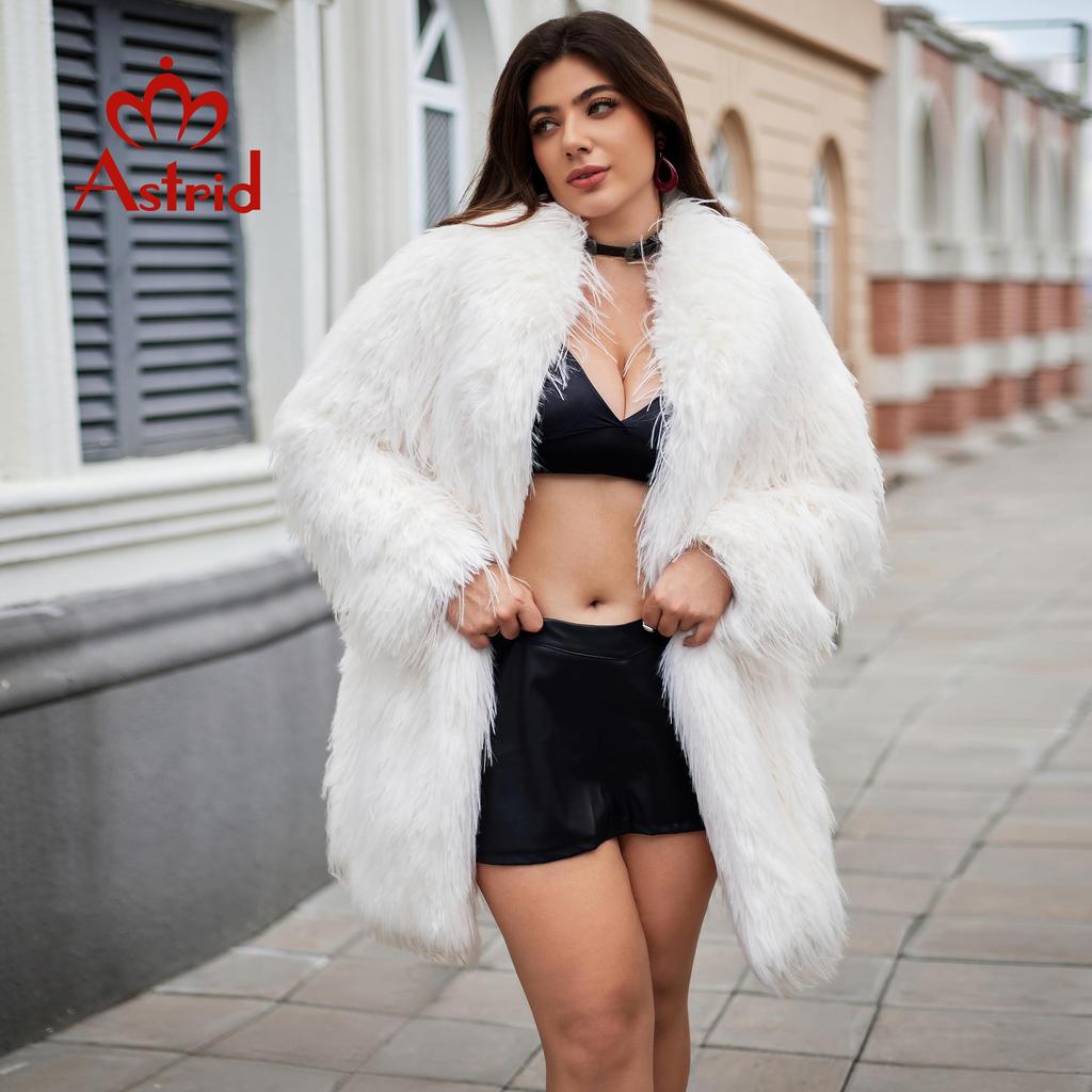 Astrid Длинное искусственное меховое пальто для женщин 2024 года, зимний свободный кардиган, меховая куртка больших размеров, стильное женское роскошное меховое пальто для девочек AN-30202