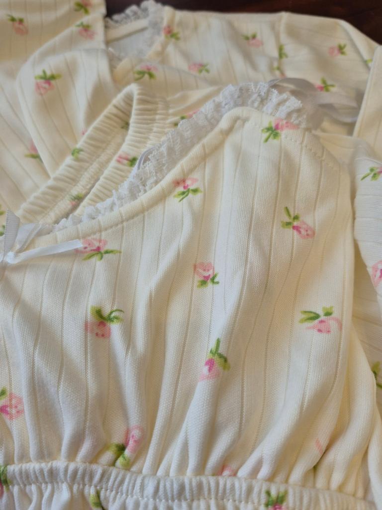 Пижамные комплекты для женщин, милая пижама для девочек, V-образный вырез, цветочный принт, комплект из трех предметов, пижама, милая, элегантная, повседневная, нежный бант — купить товар онлайн с бесплатной доставкой по всему миру!