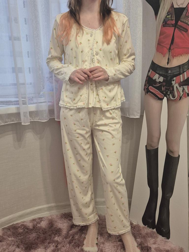 Мне безумно понравился цвет, ну очень нежный! Да и вообще вся пижама в целом нежная! Отделка симпатичная.