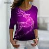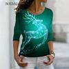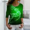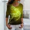 Женские рождественские модные футболки с длинным рукавом, осенне-зимние, с абстрактным рисунком оленя, 3D-принтом, уличная футболка, свободные повседневные топы