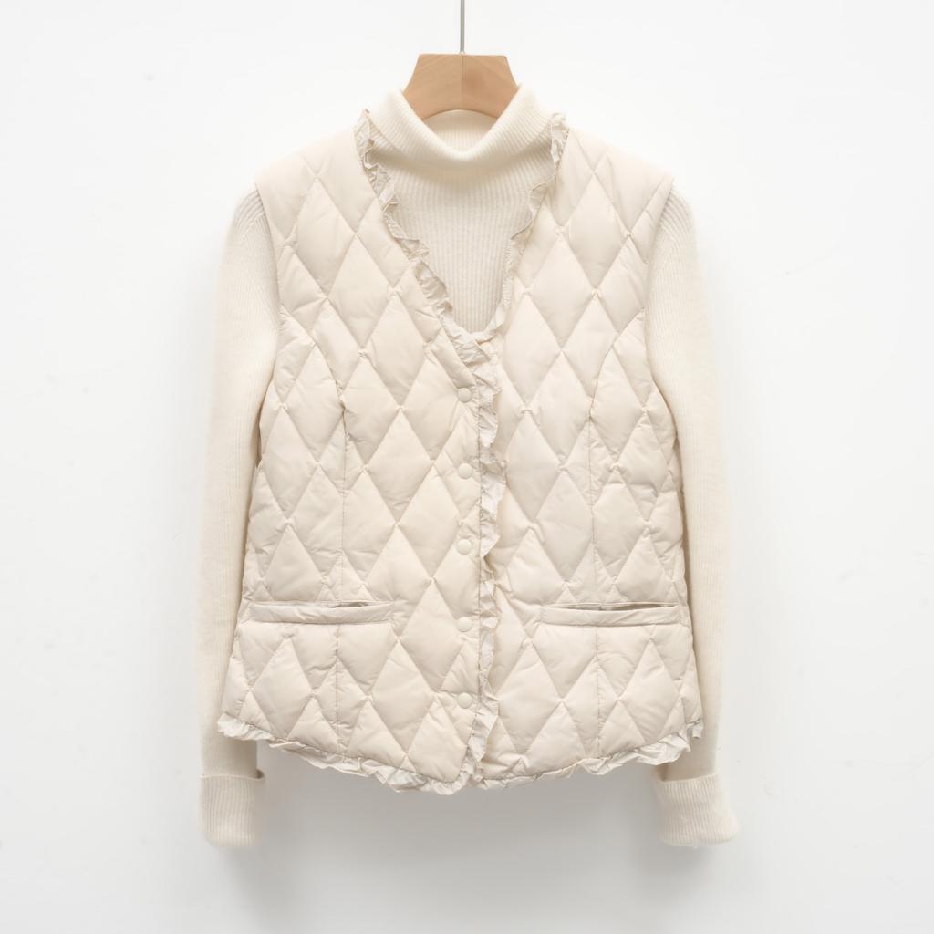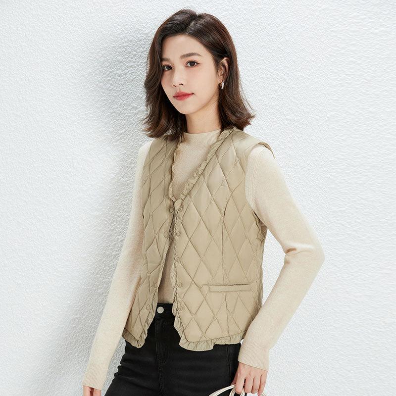 Осенне-зимняя женская куртка-пуховик с V-образным вырезом и легким пуховым наполнителем 90% из утиного пуха