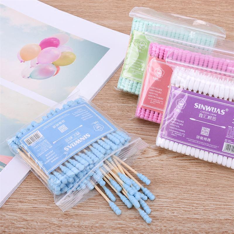 Модные женские деревянные палочки ватные тампоны 100 шт. / Упак. ватные палочки наконечник макияж одноразовые для медицинских инструментов для ухода за здоровьем с двойной головкой для чистки носа и ушей