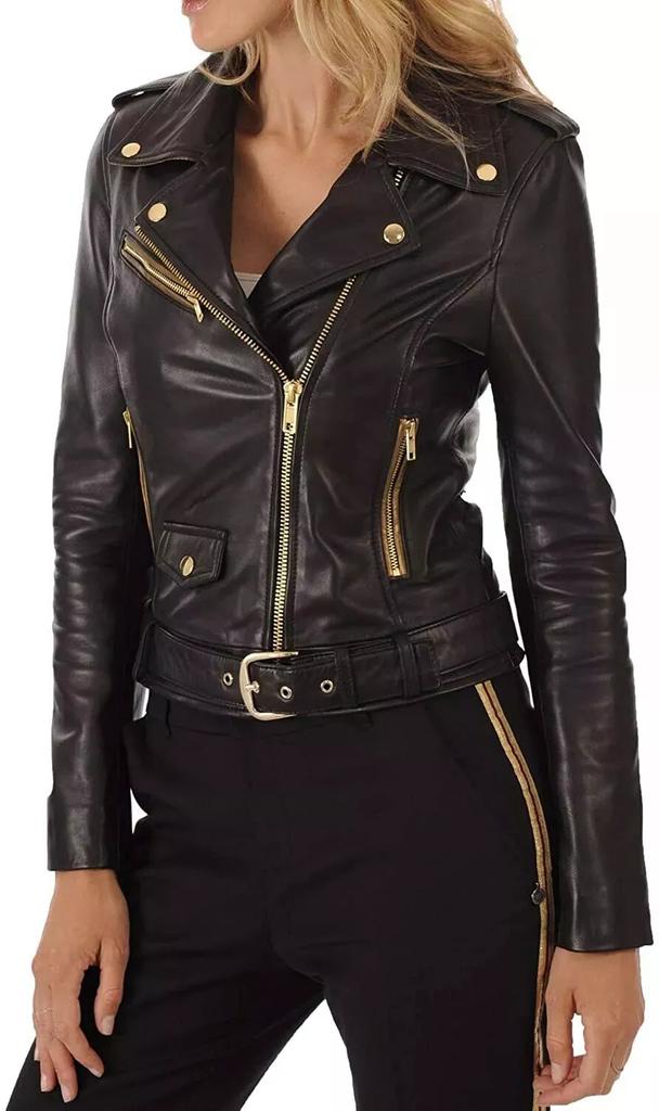 AL KHALID Мотоциклетная куртка черная женская байкерская стильная из натуральной мягкой овчины — купить товар онлайн с бесплатной доставкой по всему миру!
