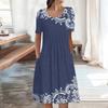 Женское летнее повседневное модное свободное платье с круглым вырезом и коротким рукавом с принтом