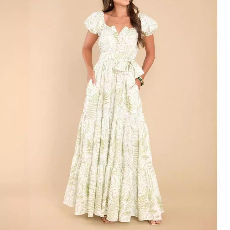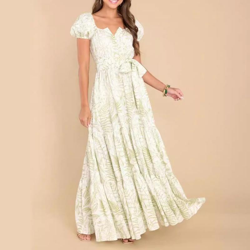 YYFS Женская мода лето весна с коротким рукавом V-образным вырезом с высокой талией повседневные платья