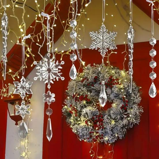 Идеальные рождественские украшения: Воплощая очарование снежинок и сосулек, эти прозрачные украшения имитируют настоящие кристаллы, элегантно отражая свет под вашей рождественской елкой.. Дополните свой праздничный декор ноткой изысканности и блеска, которые понравятся и молодым, и старым, создав праздничную атмосферу в вашем доме.
