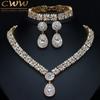 Cwwzircons Эксклюзивные ювелирные изделия из Дубая с золотыми пластинами, роскошное ожерелье с кубическим цирконием, серьги, браслет, вечерние комплект ювелирных изделий для женщин T053