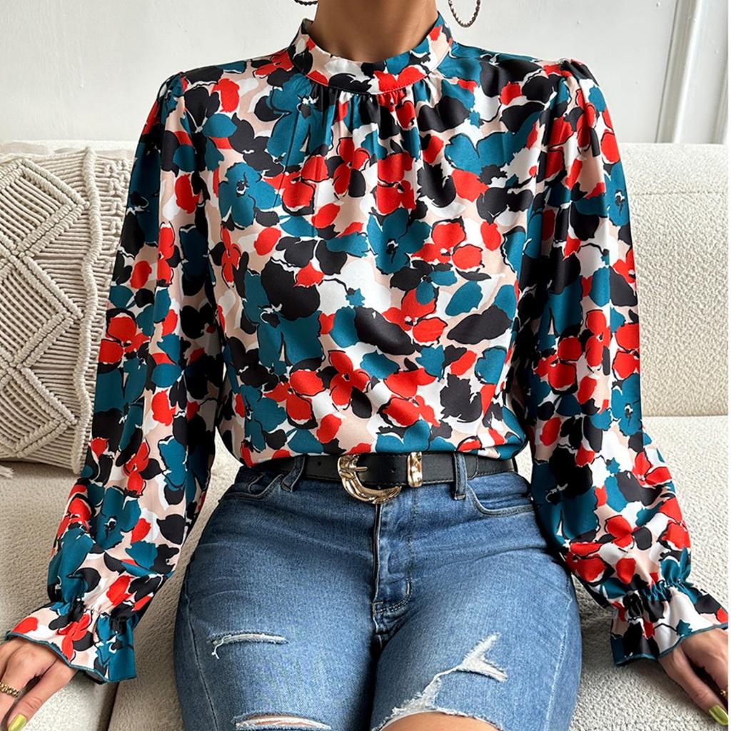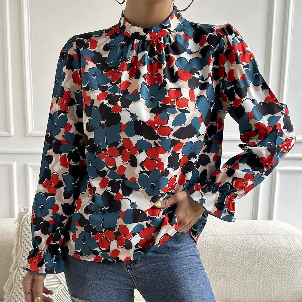 GMXIA Топ с длинным рукавом с принтом, весна-лето, отдых, праздничная рубашка с расклешенными рукавами, модное женское платье