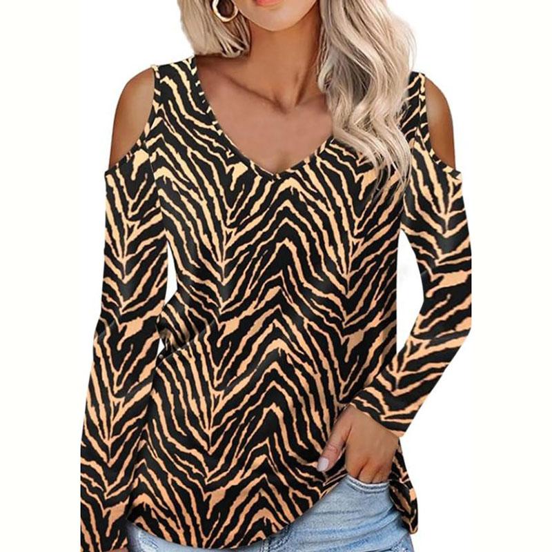 Модная повседневная футболка с длинным рукавом и открытыми плечами, V-образным вырезом, полосатым принтом, блузка, топ для женщин — купить товар онлайн с бесплатной доставкой по всему миру!