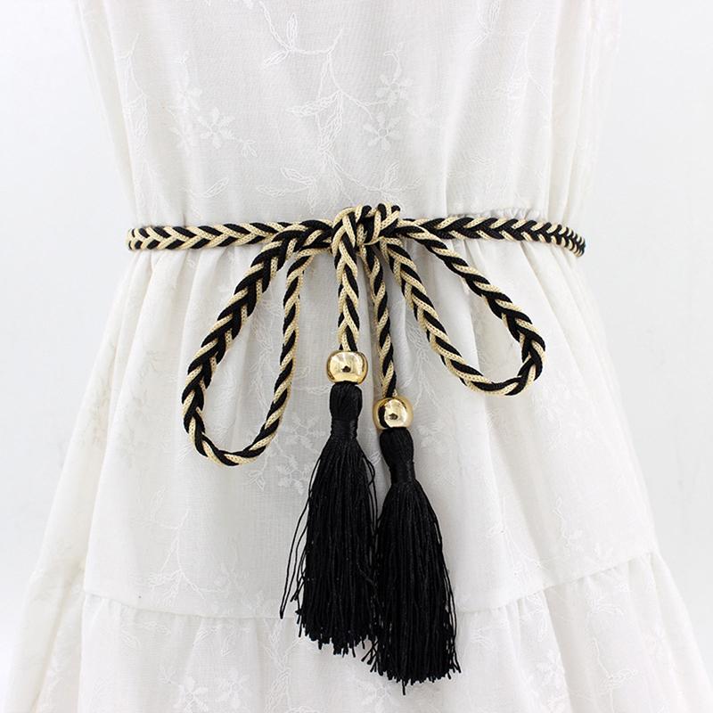 Женская юбка с тонкой бахромой и цепочкой на талии, декорированная ремешком на талии, завязанным веревкой, разноцветная
