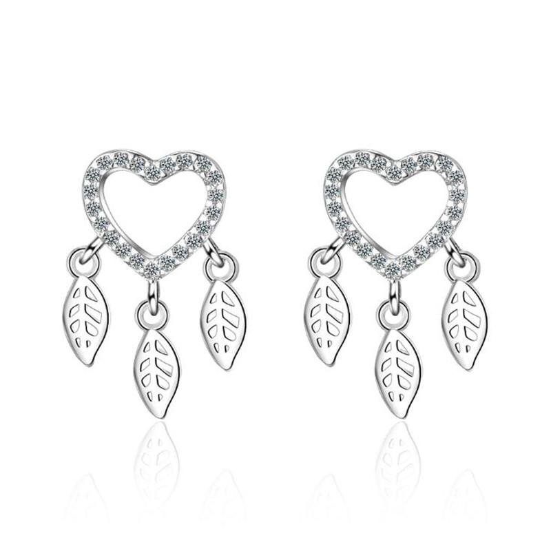 Fashion Dream Catcher Feather Personality 925 Sterling Silver Jewelry Love Heart -Shaped Crystal Temperament Stud Earrings Xze190