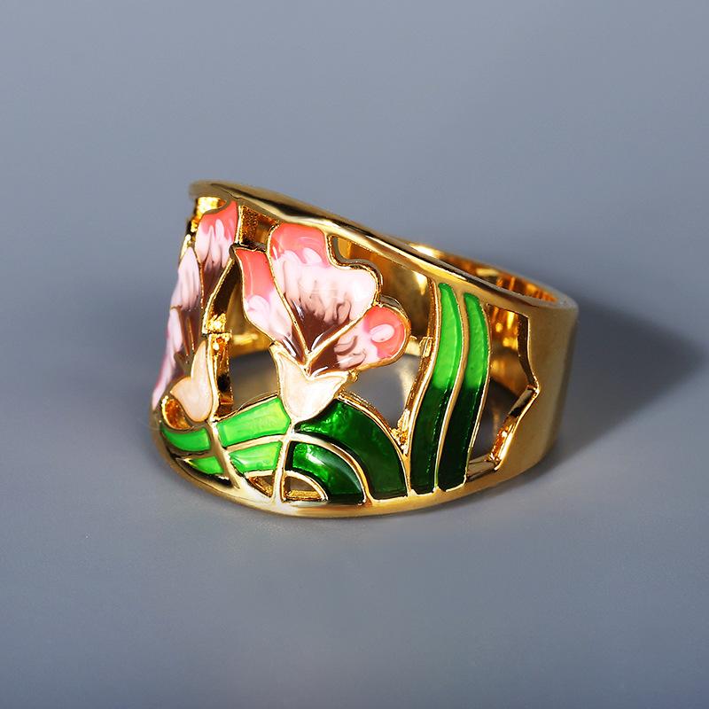 Романтичный полый цветок двухцветное эмалевое кольцо цвет новый цветок дамы 925 серебряное кольцо обручальное кольцо новые ювелирные изделия кольца для женщин