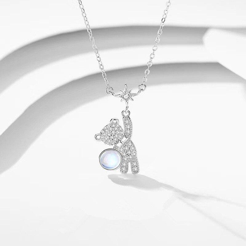 925 пробы стерлингового серебра медведь звезда подвеска ожерелье для женщин девочек ювелирные изделия для вечеринок колье воротник цепи ожерелье