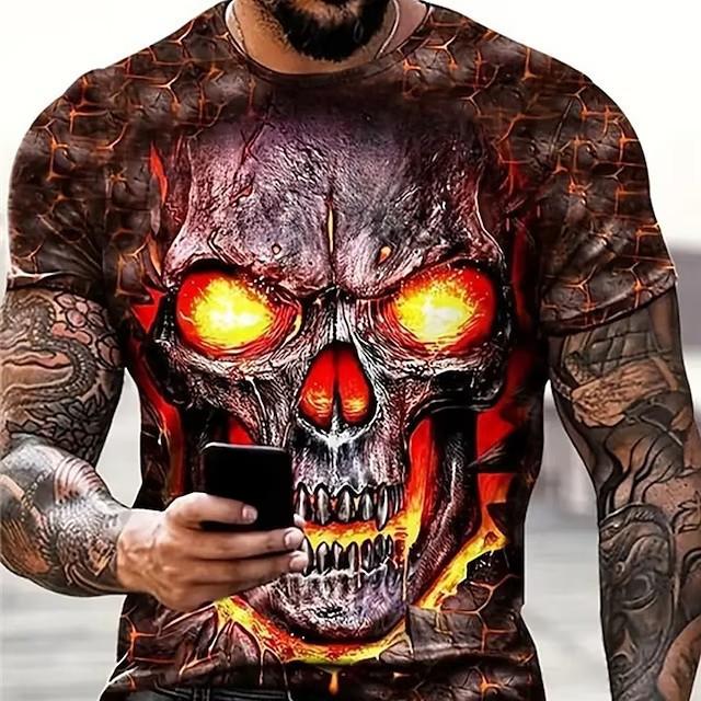 Летняя мужская свободная футболка с короткими рукавами и принтом в виде головы огня, градиентного цвета, с круглым вырезом