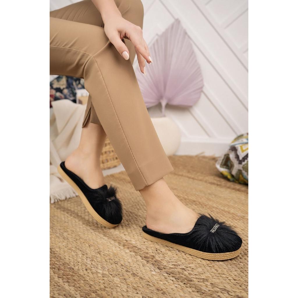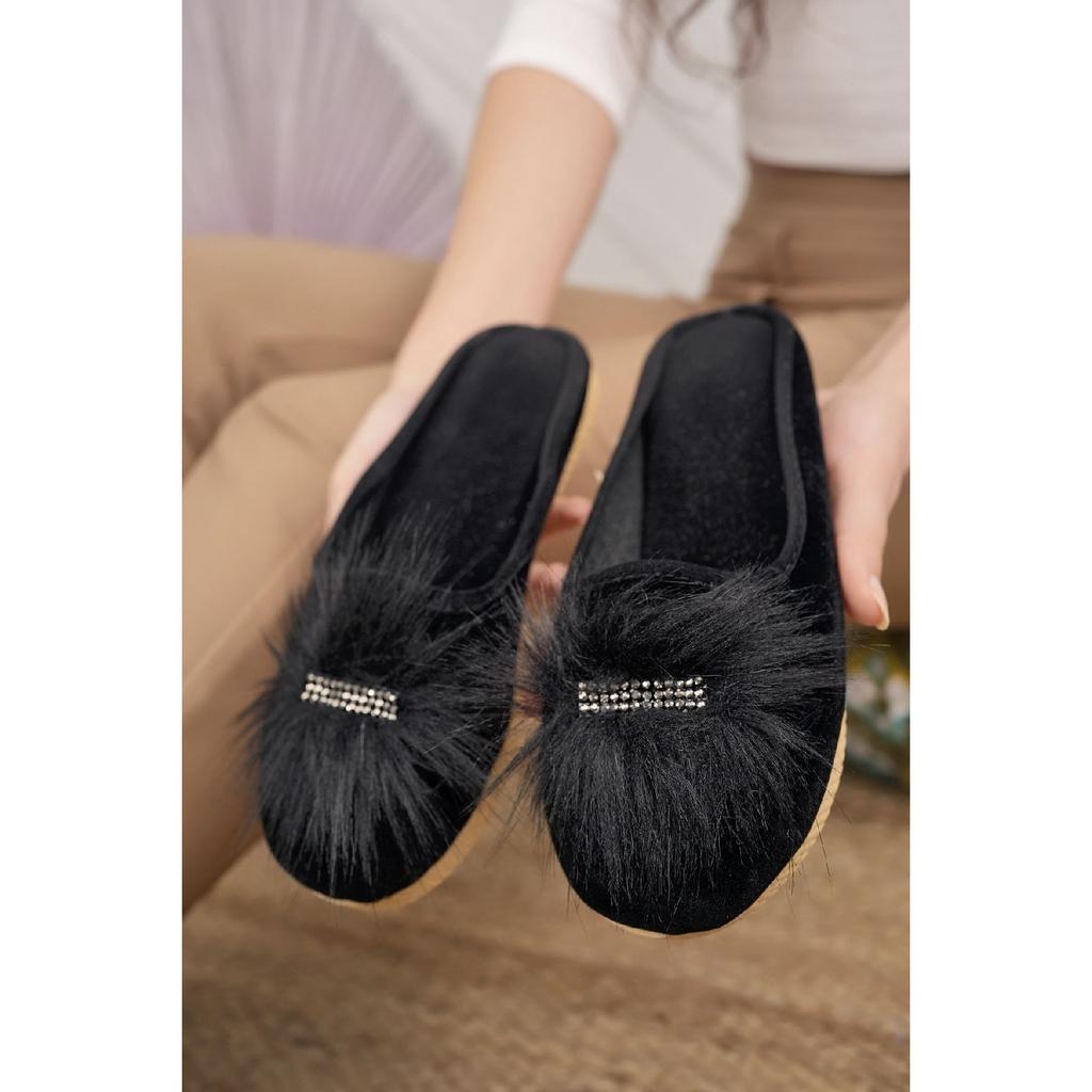 Черные женские пушистые домашние тапочки, зимние домашние мягкие удобные тапочки с камнем, тапочки для гостей при рождении, приданое