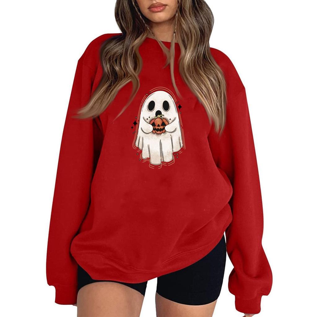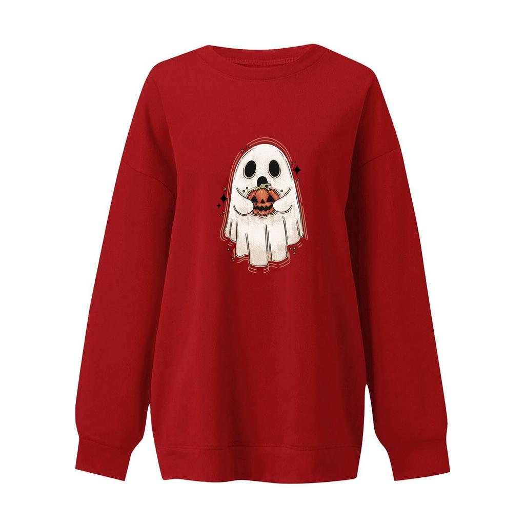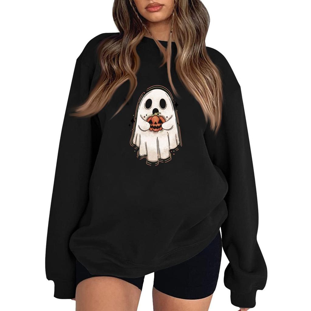 Женские повседневные модные толстовки с длинным рукавом и круглым вырезом с принтом Хэллоуина, пуловер, топ