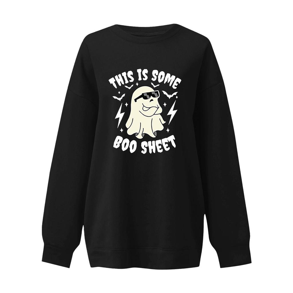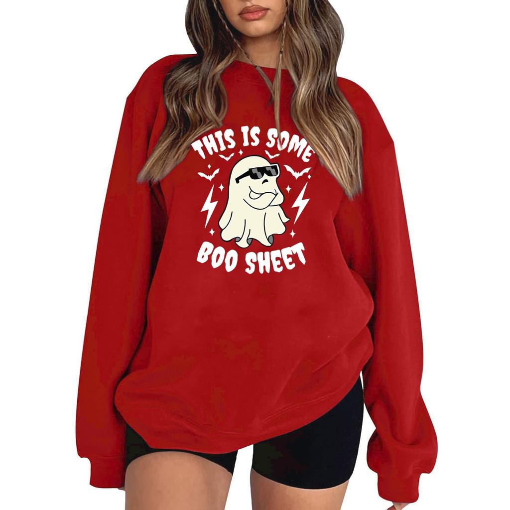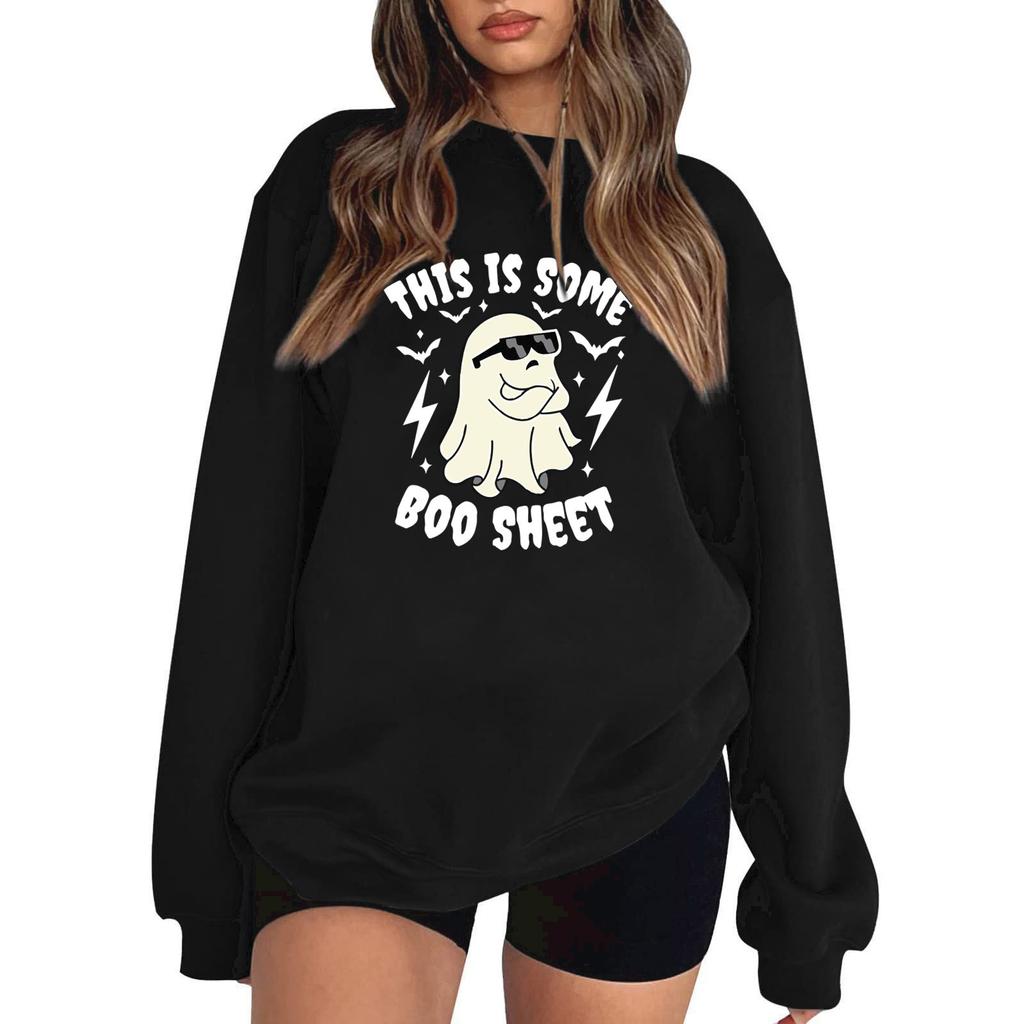 Женский пуловер с принтом Хэллоуина, круглый вырез, заниженная линия плеча, блузка с длинными рукавами