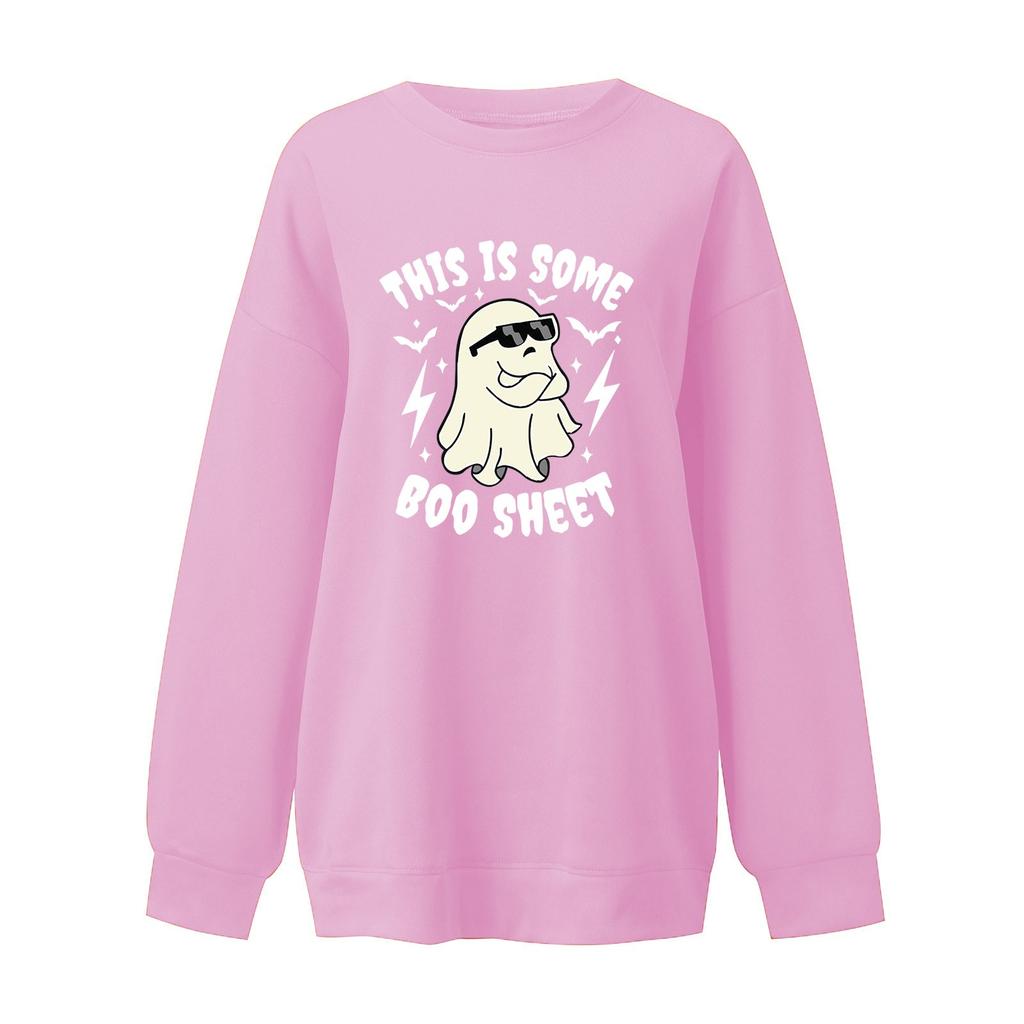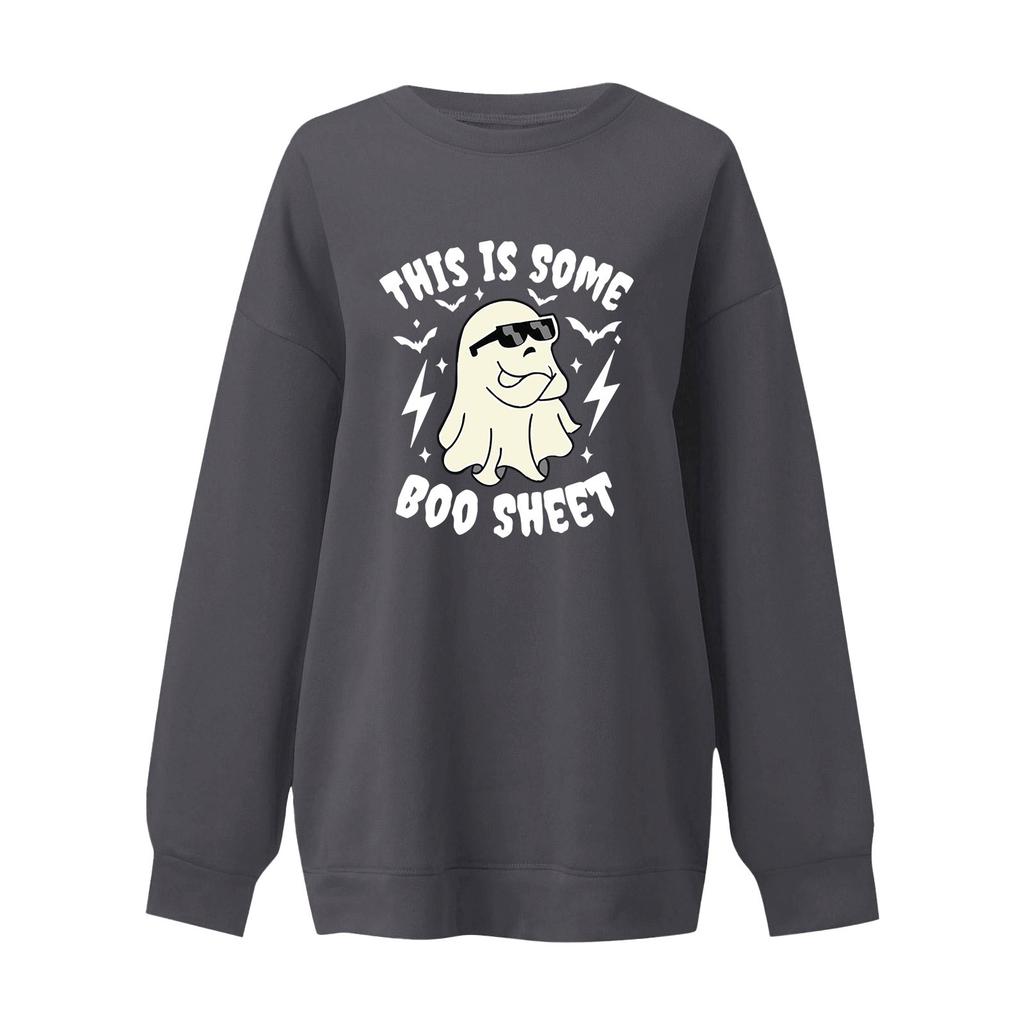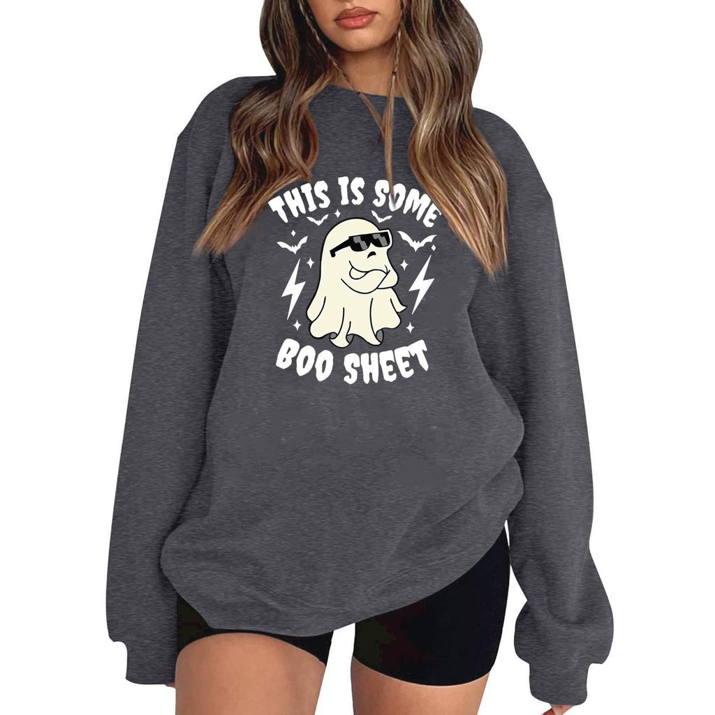 Женский пуловер с принтом Хэллоуина, круглый вырез, заниженная линия плеча, блузка с длинными рукавами