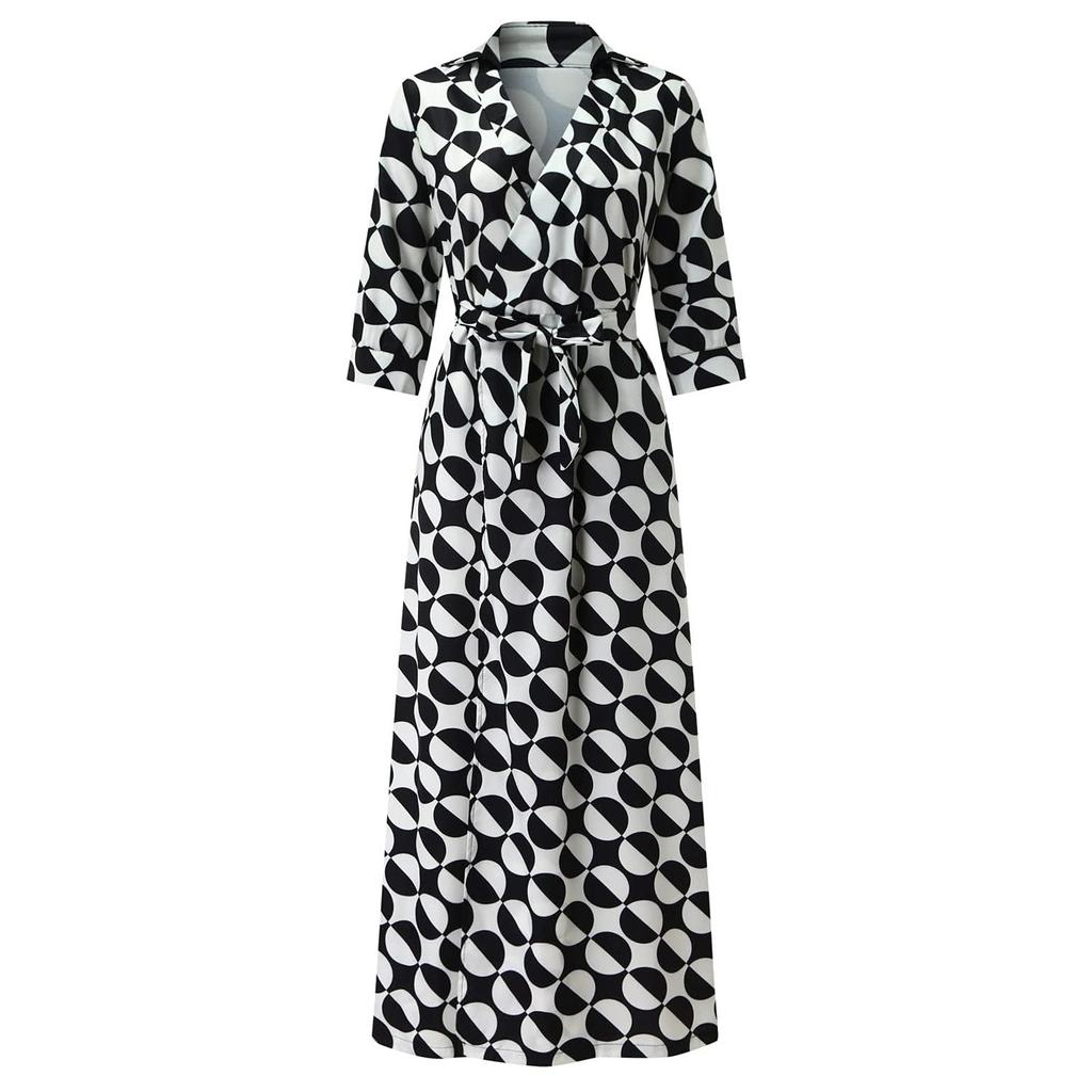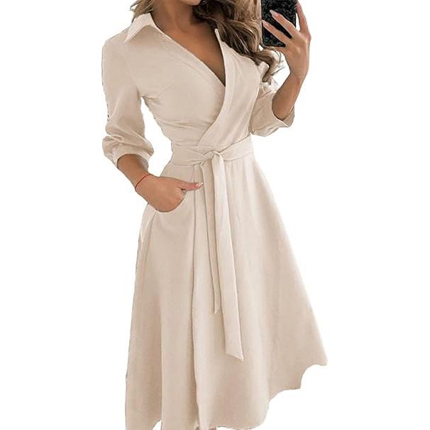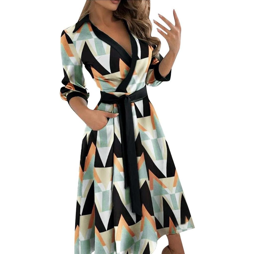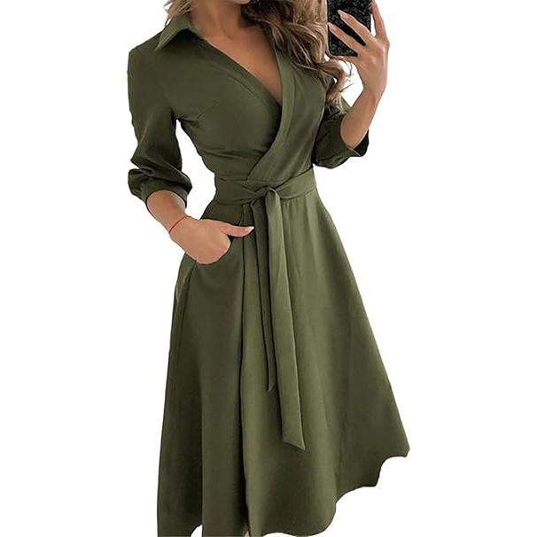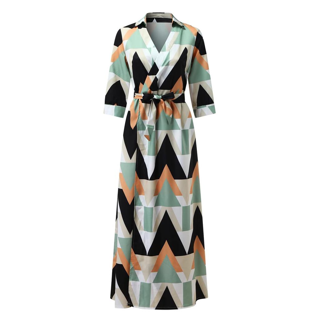 Женское платье макси с длинным рукавом, V-образным вырезом, длиной до щиколотки, длинное платье, повседневное платье А-силуэта с поясом