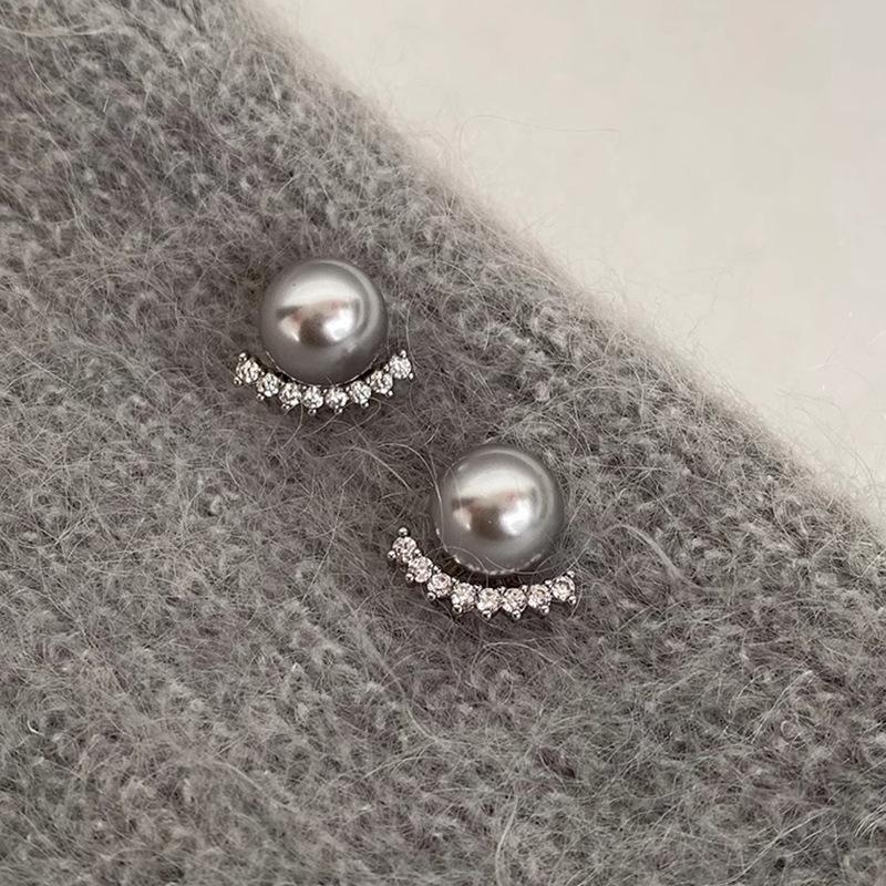 Серьги-гвоздики с французским серым искусственным жемчугом, изогнутые, с бриллиантами, женские, легкие, роскошные, ретро, геометрические, с цирконием, осень и зима — купить товар онлайн с бесплатной доставкой по всему миру!