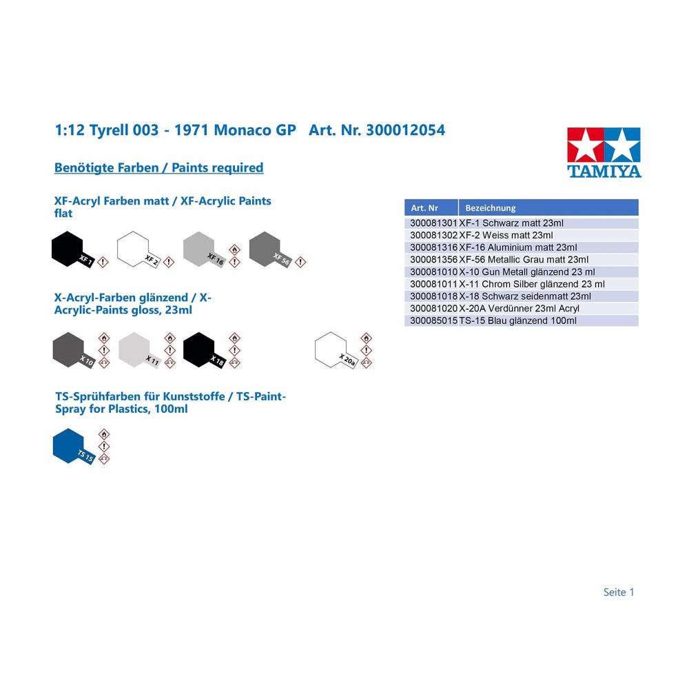 Tamiya 112 Big Scale Series No.54 Tyrell 003 1971 Monaco GP Пластиковая модель 12054