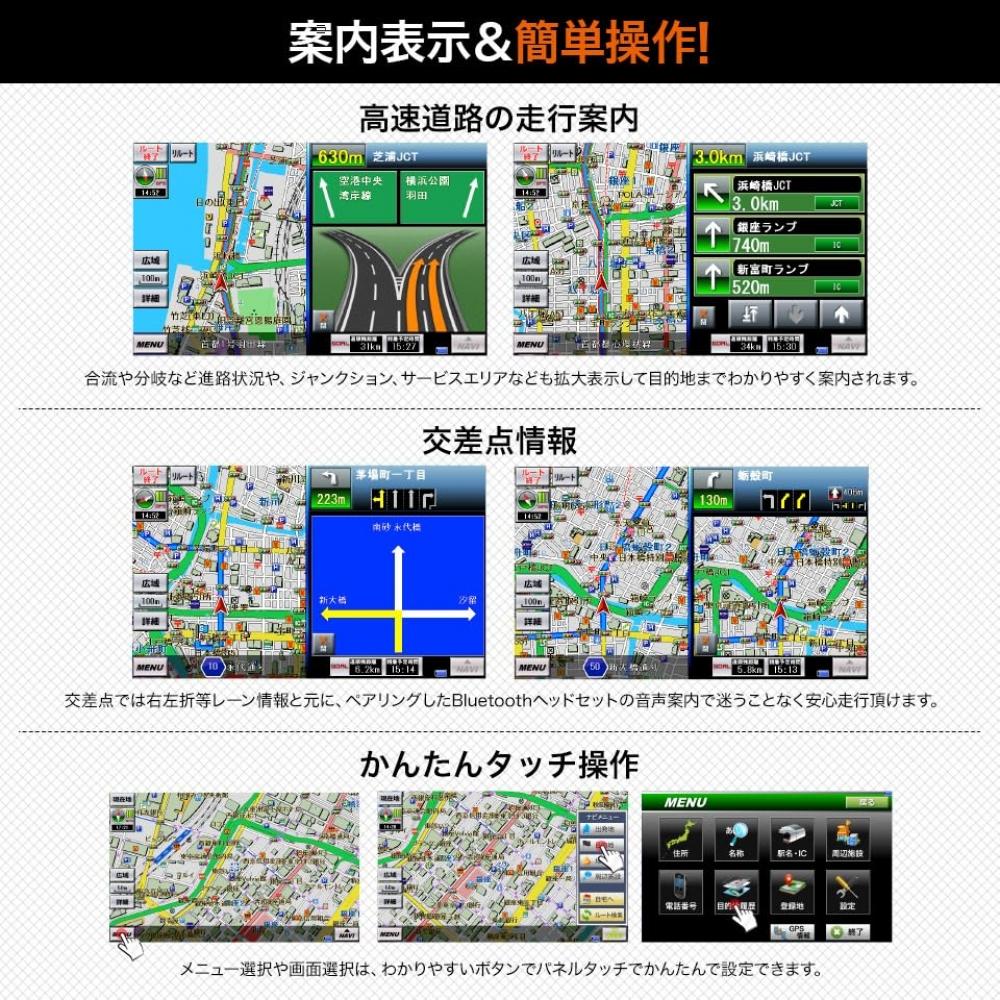 Motorcycle navigation touch panel portable navigation 5 inches Rurubu data included 3 years free map updates Bluetooth waterproof FF-PD-003B-A