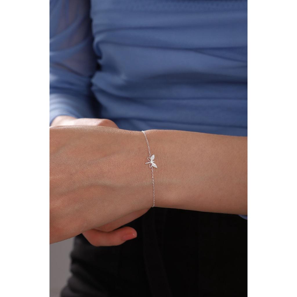 Минимальный браслет-стрекоза с белым цирконом и цепочкой из стерлингового серебра 925 пробы