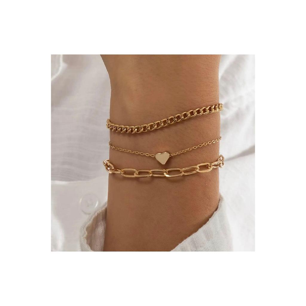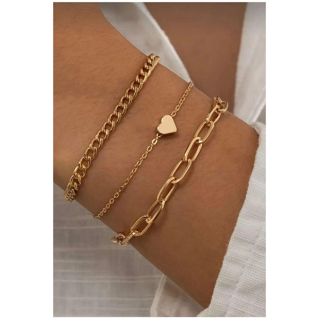 Женский золотой комбинированный браслет из трех частей с сердечком
