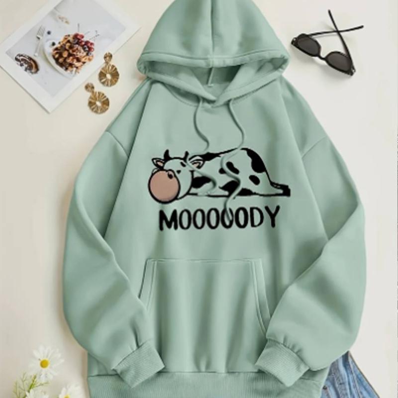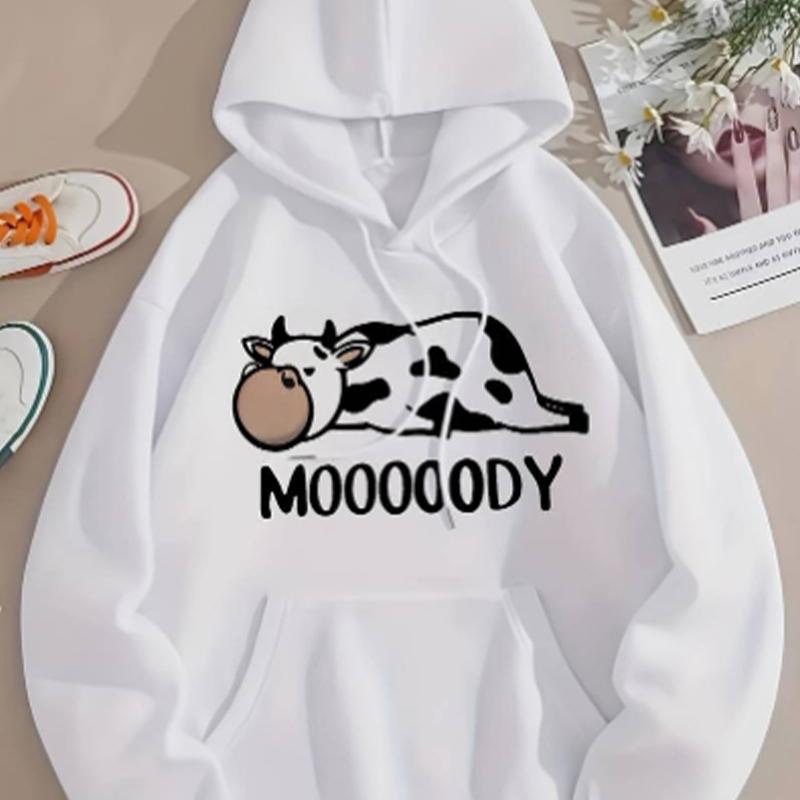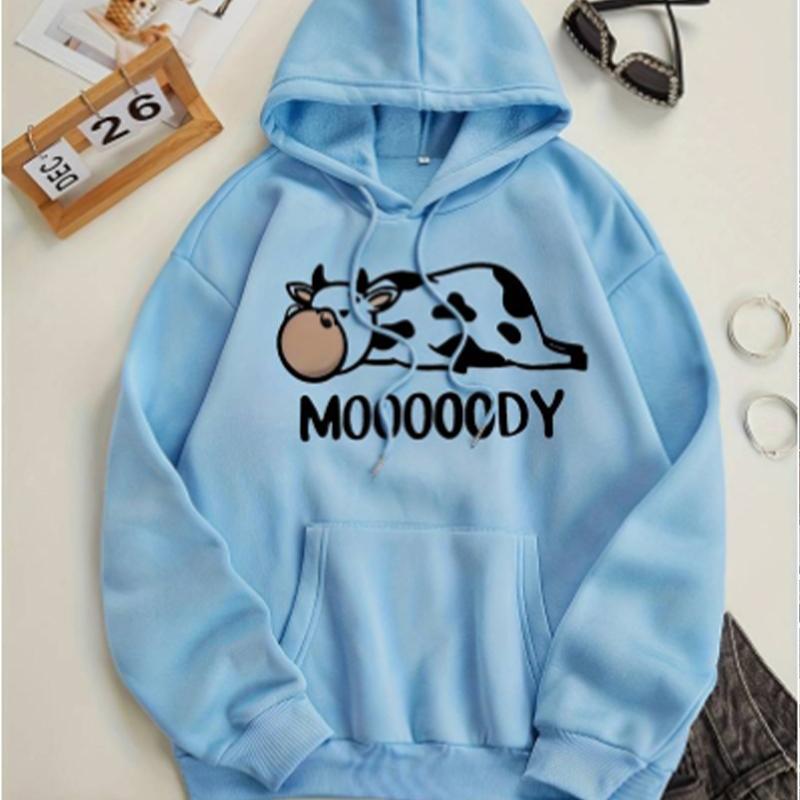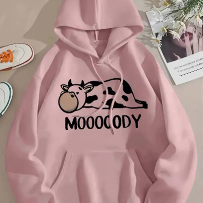Женские свободные толстовки с принтом коровы из мультфильма, блузки, толстовки, повседневные свитера с длинным рукавом