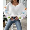 Женский свитер с цветочным узором, связанный вручную крючком, с простым свободным однотонным вырезом и расклешенными рукавами, открытыми плечами — купить товар онлайн с бесплатной доставкой по всему миру!