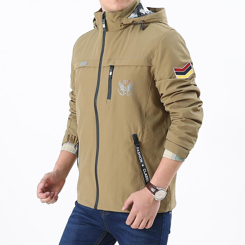Новые мужские повседневные куртки весна и осень свободная мужская ветровка с капюшоном большой размер топы повседневные