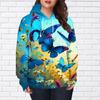 Женская мода синяя блузка с принтом бабочек, свободная толстовка с капюшоном, повседневная блузка с длинным рукавом, пуловер