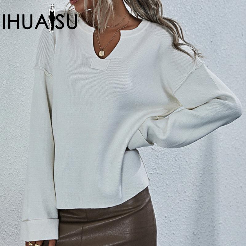 IHUASU Женский осенне-зимний однотонный свитер большого размера с V-образным вырезом — купить товар онлайн с бесплатной доставкой по всему миру!