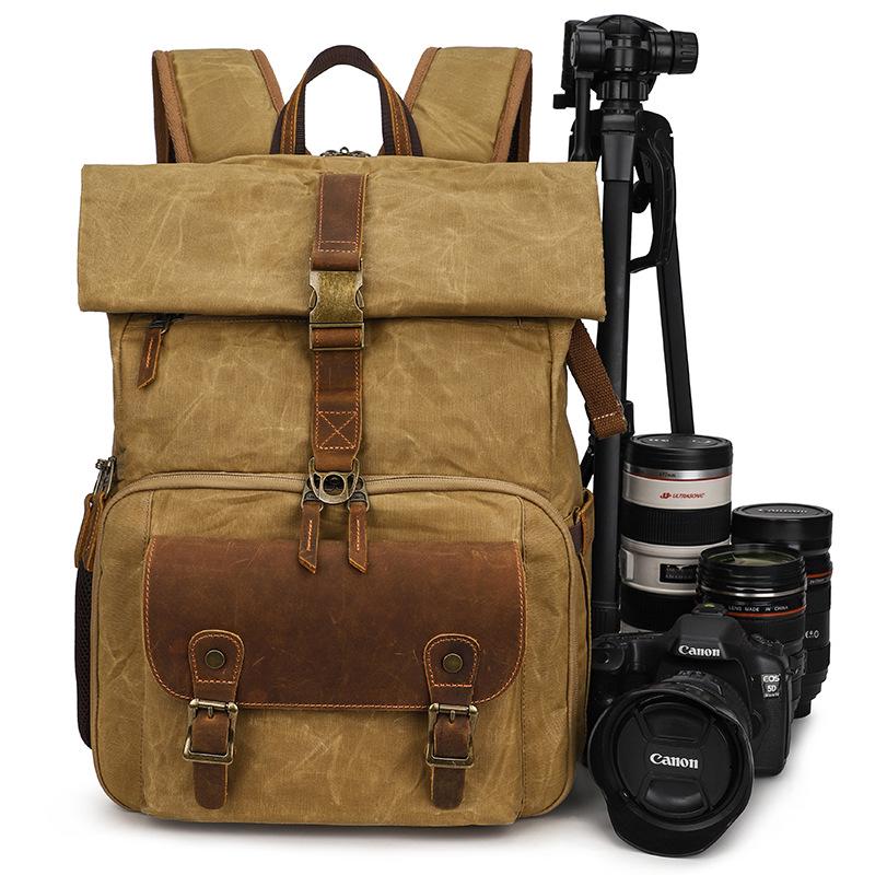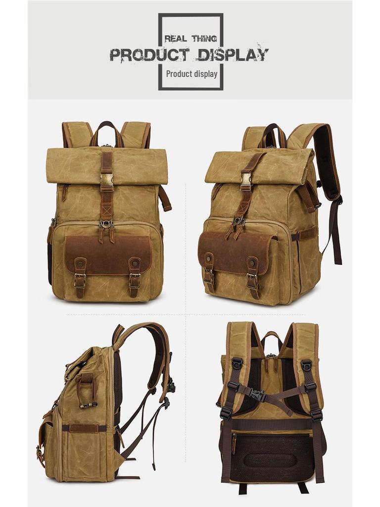 Водонепроницаемая сумка большой вместимости для фотосъемки на открытом воздухе - наплечный рюкзак в европейском и американском стиле, цифровая зеркальная камера, холст с восковым покрытием.