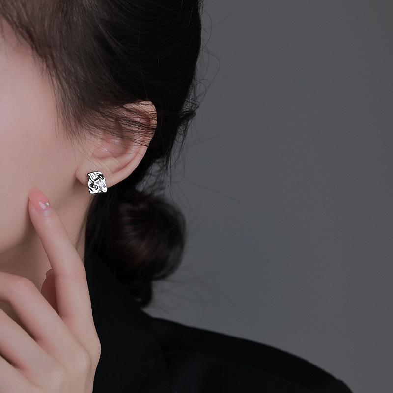 Сложенные серьги-гвоздики Женские летние серьги Niche Design Sense с нерегулярной текстурой жидкости Квадратные геометрические серьги с бриллиантами