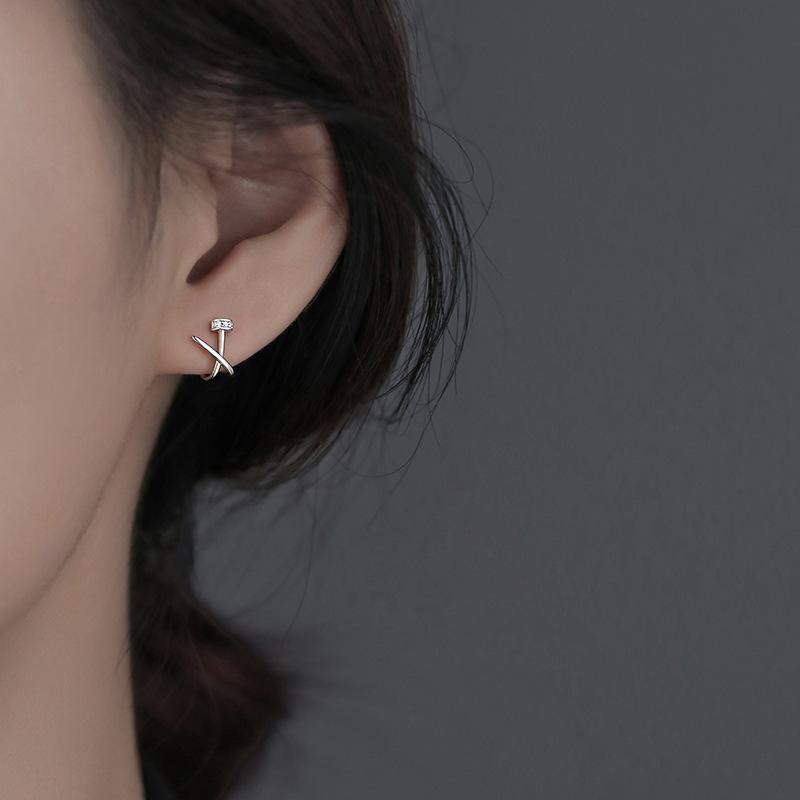 Серьги-гвоздики в форме креста Женственные минималистичные темпераментные серьги с бриллиантами Серьги